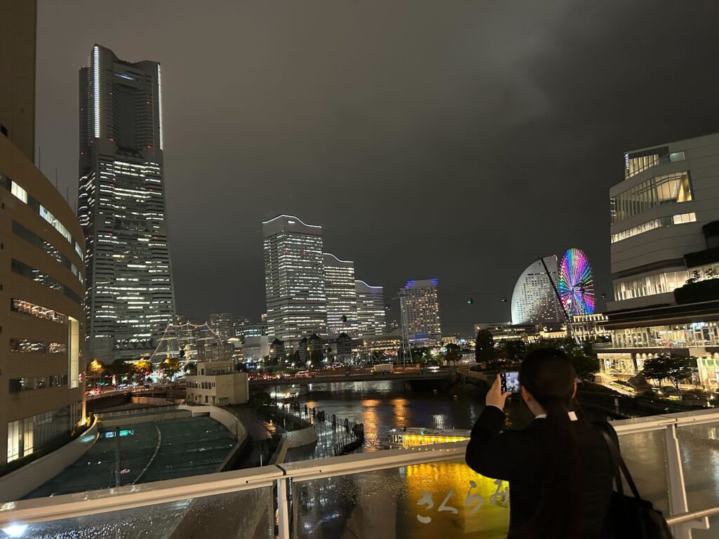 学生さんたちとの打ち上げを実施したあと、今回の学生さんたちのリクエストで、みなとみらいの夜景を見に行きました。横浜らしいとても素敵な夜景に出会うことができ、喜んでいただきました。