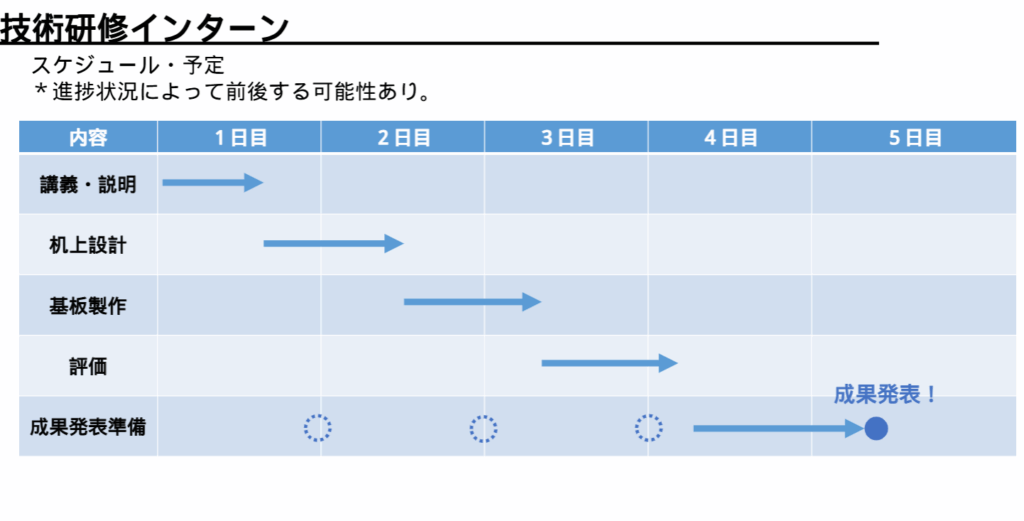 今回のブログでは、当社インターンシップの進め方や回路設計体験の様子を写真とともにご紹介します。