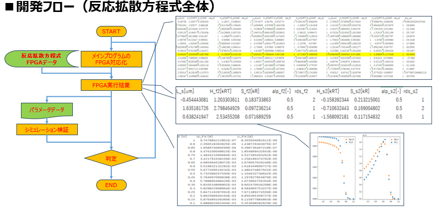 構築された全体プログラムに対し、実際のパラメータデータを投入してシミュレーションを実行します。 ここでは、単一の計算結果だけでなく、時間ステップごとに変化する方程式の挙動が、理論値やソフトウェア実行結果と整合しているかを評価します。
