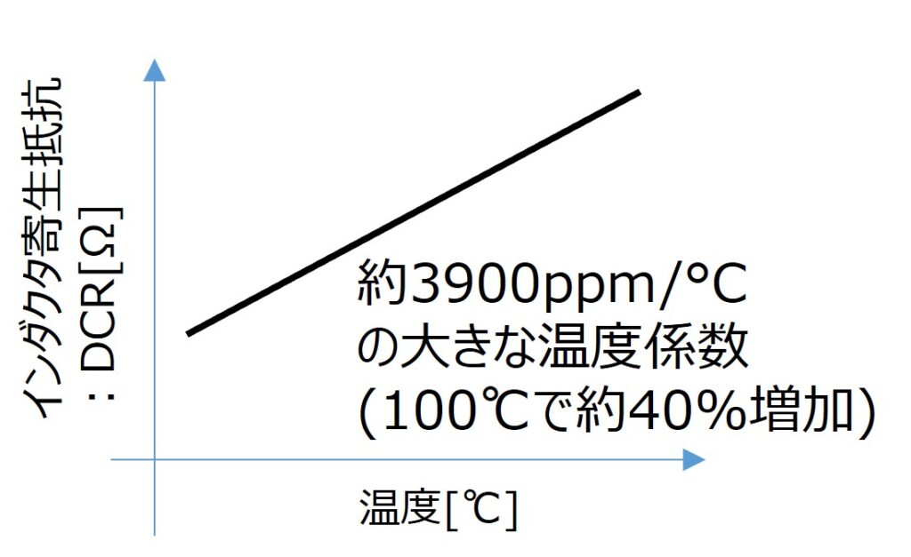 ところが、このDCRには大きな問題があります。温度依存性が非常に大きいのです。およそ3900ppm/℃ という温度係数を持ち、100℃の温度変化に対して、DCRは約40%も値が増加してしまいます。そのため、ΔVだけを使った電流検出では、正確な出力電流を得ることができません。